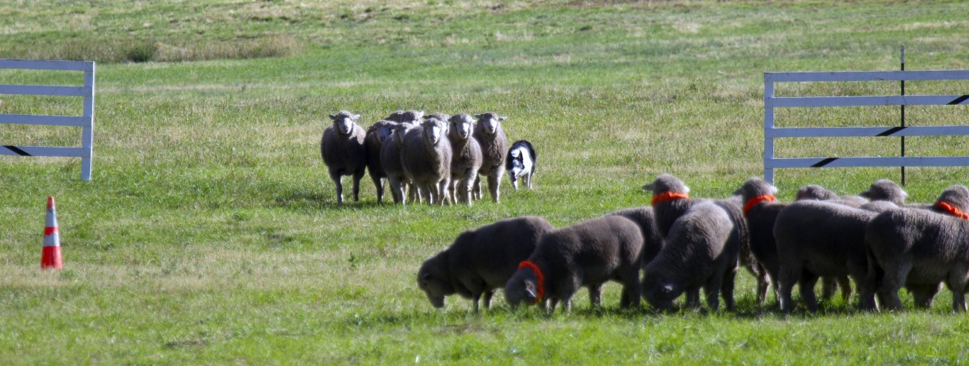 Thus commences the course where the dog must bring the sheep into the infield, working them quietly and safely though a series of obstacles. Demonstrating practical working skills for the farm or ranch, handlers guide the dogs with a series of commands to complete six scored components of a sheepdog trial.